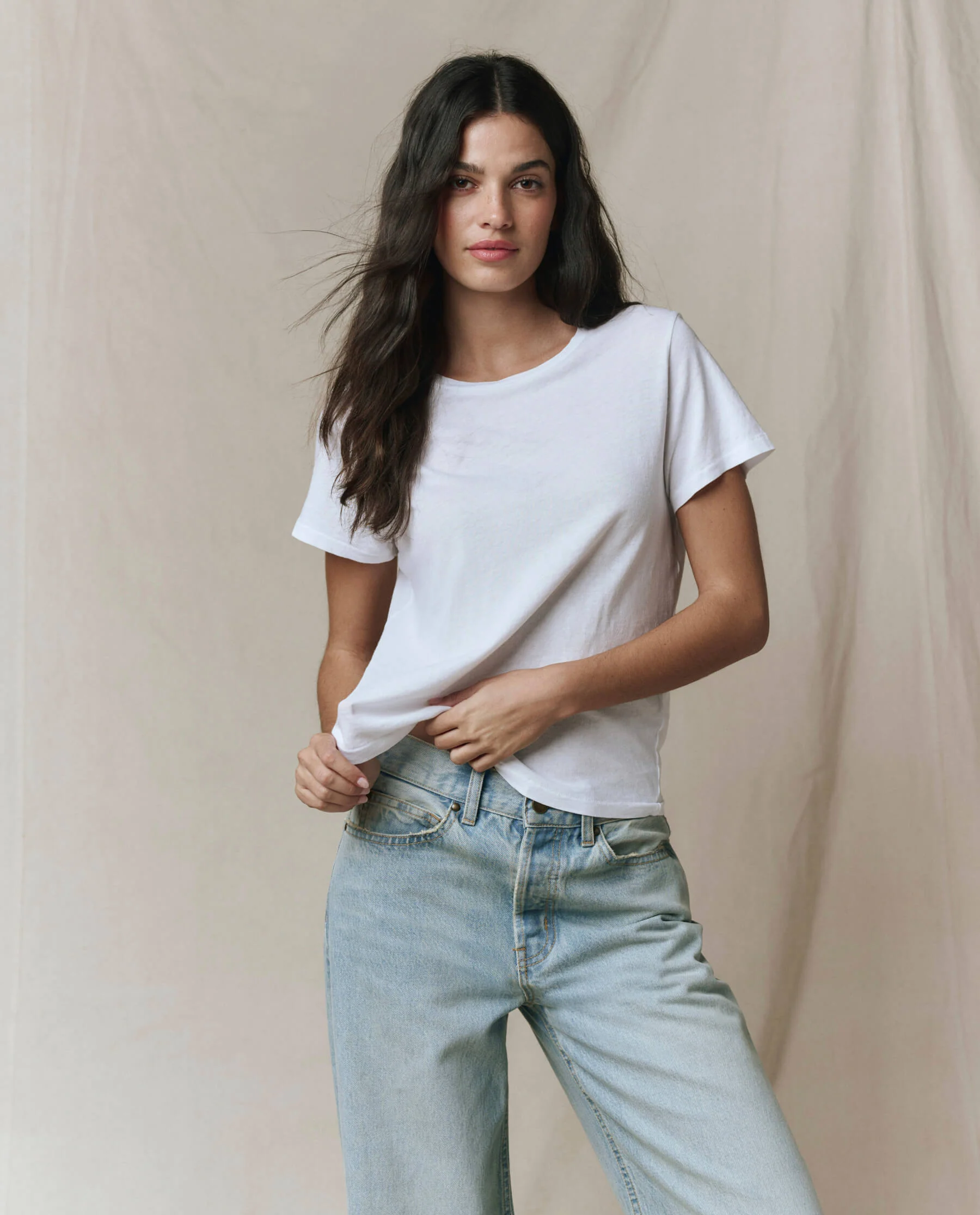 The Little Tee. is inspired by a vintage 1930s men's undershirt with a super washed and lived-in feel. This tee is our favorite layering piece, it’s close to the body fit makes it easy, comfortable, and perfect for wearing by itself or layered under a sweater.