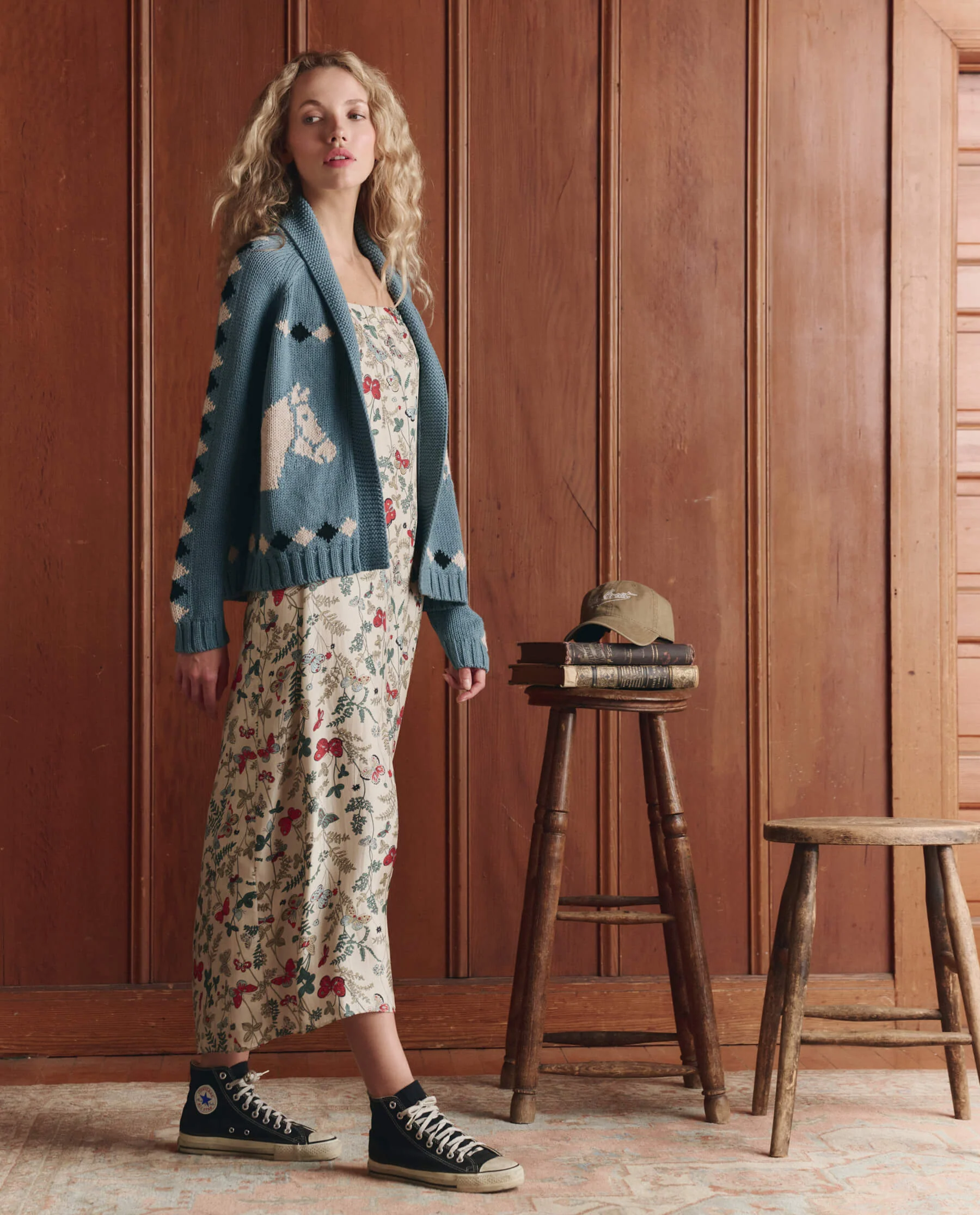 A reimagined version of our signature Lodge Cardigan, the Stable Lodge Cardigan features a western horse motif—a playful detail inspired by a 1960s children’s sweater. Spun from a soft cotton/alpaca yarn, it’s cozy, comfortable, and full of character. Designed for intentional ease throughout the body. Size down for a smaller fit.