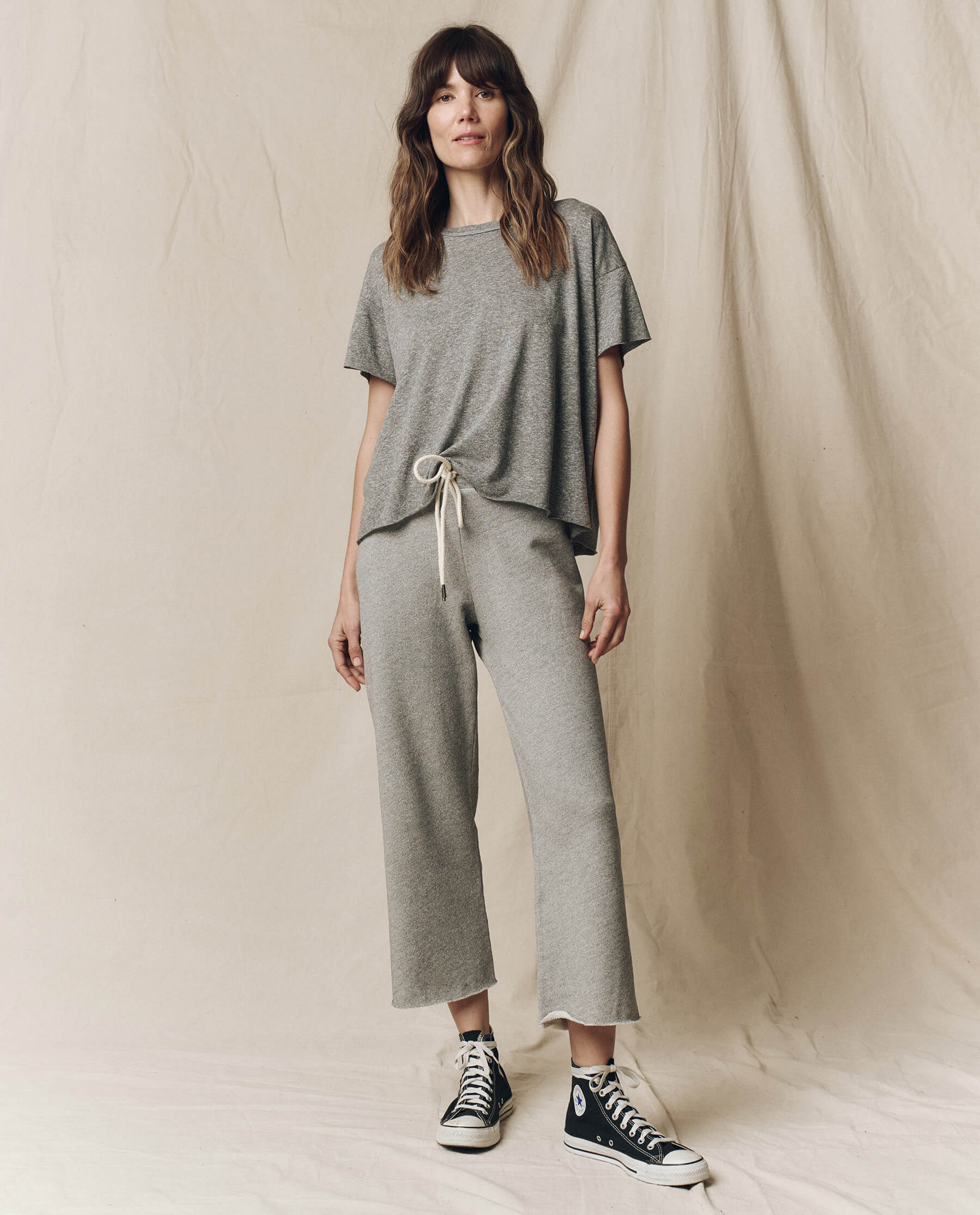 The Wide Leg Cropped Sweatpant. -- Varsity Grey